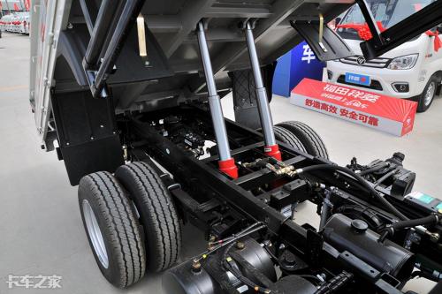 和多数轻型自卸车相同,瑞沃小金刚上装也采用中置双顶的举升方式。不同之处在于,瑞沃小金刚采用原厂举升拉杆设计,相比后期加装更加美观,也不容易造成误触。