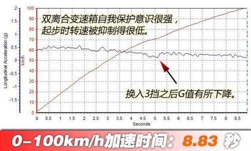 不可否认,大众的这台EA211 1.4TSI发动机的确表现不俗。之前搭载高功率版本的高尔夫以及明锐都跑出了0-100km/h 8秒甚至更快的成绩,而这台低功率版本的1.4TSI动力依然很强劲,拖动1.2吨左右的浩纳十分轻松。我们实测的0-100km/h加速成绩为8.83秒,甚至比2012款POLO GTI还快(实测9.11秒)!