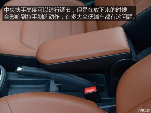 真皮座椅采用了双色搭配,坐着很舒服,但很可惜没有配备电动调节功能,作为一辆顶配车型实在不应该。另外,中央扶手在放下来的情况下会影响到拉手刹的动作。这个问题在许多低端大众车上都出现过,到现在也没有解决。