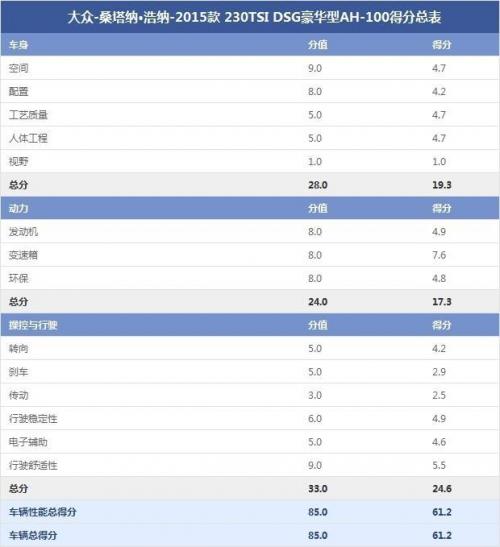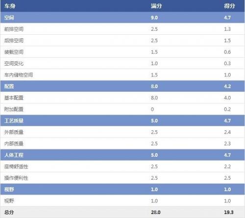 在AH100静态打分环节,浩纳在工艺质量和人体工程学等方面获得了很高的分数,而整车的视野也是相当好的,外后视镜还采用了双曲率镜片,从而减小盲区。也许有些人会问,既然上面对空间评价比较高,为什么实际分数却与满分相差较大呢?由于我们的规则是为所有车型而定的,所以浩纳的空间表现再好,也只是相对同级别的紧凑型车而言,空间显然无法和SUV、MPV等车型相提并论,4.7分已经是同级别中较高的分数了。