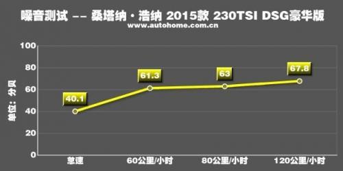 噪音方面,这台浩纳也颇为令人满意。各个时速下的噪音值均低于我们的推荐标准,主观感受上也的确听不到某一项特定的噪音源。仔细观察车门和底盘的隔音并没有什么特别之处,车窗玻璃也再普通不过了,但120km/h时的风噪和胎噪却低于我们的预期。