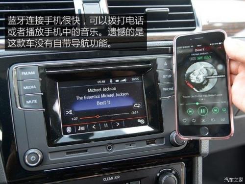进入车内,熟悉的、略显呆板的大众经典内饰映入眼帘。车内你能触及的地方全部由硬塑料覆盖,只有扶手、座椅等必要区域采用了皮革材质,并用橙色加以区分。然而不可否认,整个内饰的人体工程学设计非常出色。中控面板上各个按键的位置都很顺手,触摸屏的清晰度和灵敏度都值得肯定,只不过屏幕实在太小了,只比iPhone 6的屏幕大一点点而已。