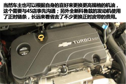每一位车主都有一个保养手册,这个手册上详细的注明每一个部件所需要的保养周期,对于全新科鲁兹来说,它有涡轮和自吸两个动力配置,同时也有MT、AT和DCG三款变速箱,所以在机油以及变速箱油的型号以及更换周期上需要多多留意;当然除了这些区别外,其余的保养基本都是一致的;同时需要说明的是,全新科鲁兹的发动机是正时链条,正时链条的优势不仅在于终身免维护,而且静音性好,从使用成本的角度,其实帮车主节约了很大一笔开支。毕竟,更换正时皮带时通常是与涨紧轮、水泵一起更换的,这套总成更换下来成本可不低啊。
