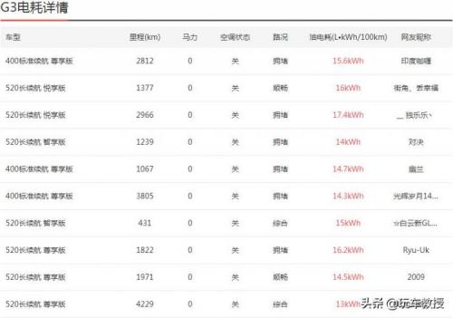教授从网上搜集了一份来源于小鹏G3车主实际用车时的耗电量,综合起来的平均值为15.01 kWh,这个数值还是比较有参考性的。从目前的能源结构转换效率算,1度电在能耗上约合0.113升汽油,那就是说小鹏G3的“百公里油耗”在1.7L汽油左右,即使这个数值翻一倍还是比传统燃油车节能。再看回“要让电动车的PM排放和燃油车持平,百公里电耗至少要降低一半。”的这句话,对于某些老司机没有数据支持的“花式吐槽“大家还是听听算了。