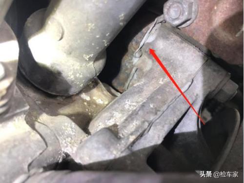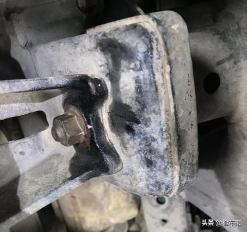 发动机支架胶垫的学名是“发动机悬置系统支架总成”,就是一大块铁疙瘩,中间夹一块减振橡胶,发动机就是搁在这块橡胶上,也俗称机脚胶。