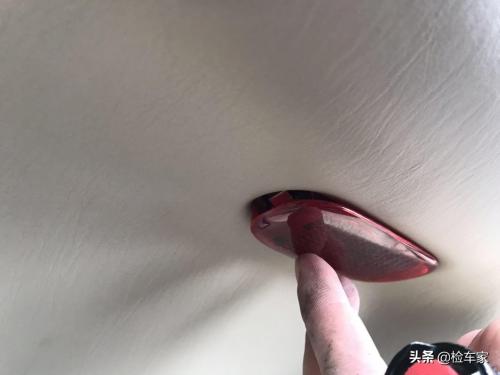 在右后叶子板的位置发现了一个比较大的凹陷,作为最外层的覆盖部位,当发生碰撞的时候,受刮蹭的机率自然是较为之高的。那如果严重的话,叶子板在之后的修复过程中可能还会涉及到钣金喷漆。不过依照目前的情况凹陷位置并没有伤到车辆的底漆只需要通过专用的工具吸附出来就好。
