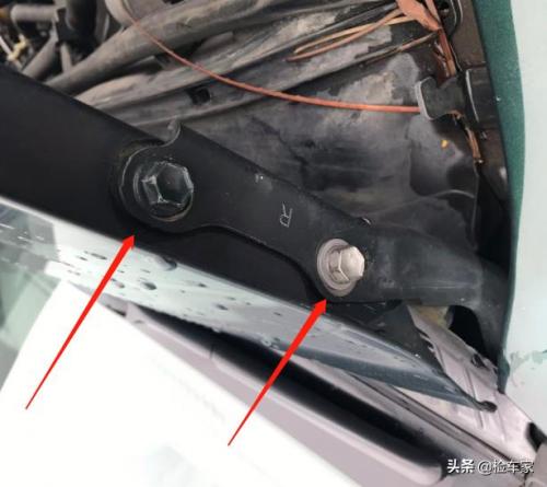 机盖打开以后可以看到机盖螺丝被拧动过,原来带漆的螺丝也被替换成了普通的螺丝。谁也不会无缘无故的拆引擎盖,只有在车辆机盖发生变形才去拆卸修复它,小剐蹭是不需要拆掉的,直接喷漆就可以了。