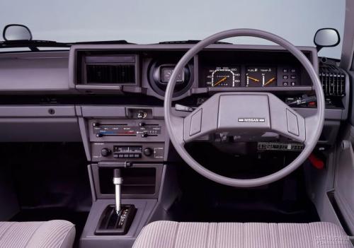 在1983年的10月,第七代蓝鸟正式发布。这款车跟以往相比可谓是划时代的,首先是它正式名为“日产蓝鸟”而非“Datsun蓝鸟”,直接弃用了在全球范围内使用了几十年之久的“Datsun”品牌,统一为“日产”品牌;第二是新车采用了前置前驱的布局,在当时,前驱是先进技术,这是当时全世界的造车潮流,相比起以往的纵置后驱布局,横置前驱有着更高的传动效率以及更大的车内空间,这对于家用车来说再合适不过;第三是它第一次采用了“U”字头来命名车架番号,而非先前的纯数字系列。