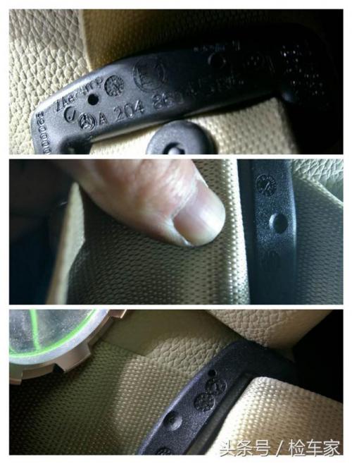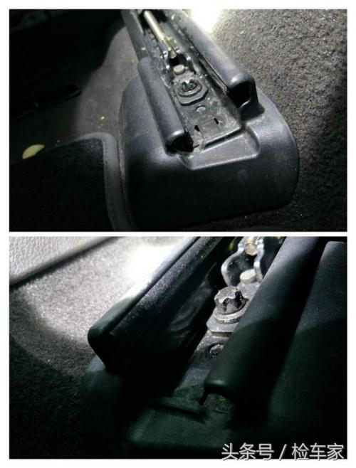 开始内饰的检测吧,如图上是驾驶舱的座椅螺丝,均了没有拆卸拧的的痕迹,及座椅底部的座椅滑轨也没有异常的生锈,都比较正常,初步可以排除水泡车的嫌疑。