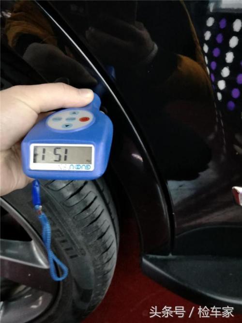 右后叶子板边缘有拇指盖这么大面积的喷漆,漆面厚度在151um。小编推测应该是小划痕喷漆修复造成的。如果说小编有一辆这车,我也会去喷漆的,要么多丢面子。