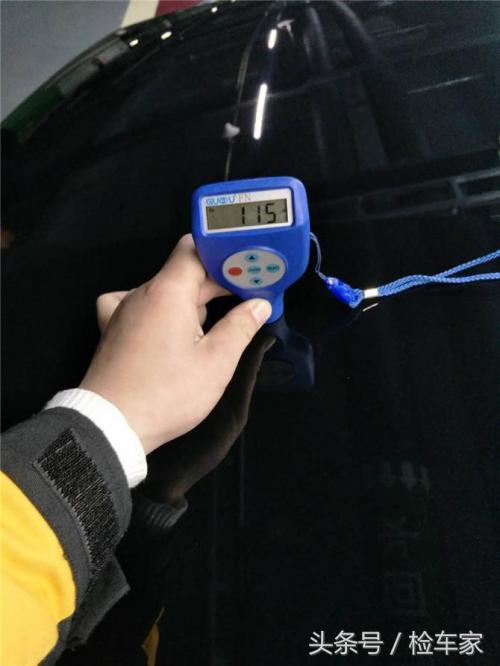 外观基本的检测完毕后小编打开工具箱拿出漆膜仪开始对全车的漆面进行检测,看看哪里存在较厚的喷漆。首先检测的是机盖,看图说话,经过对整个机盖的漆面进行检测,机盖的漆面还算是比较均匀,没有后喷漆的现象,数值大概在115um之间,属于正常数值。