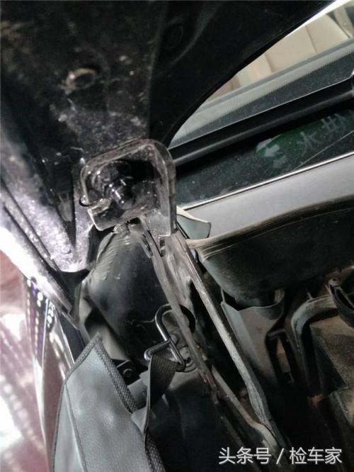 水箱框架的生产日期为13年11月,同样也和车子的出厂日期相符。对水箱框架的螺丝检测也没有发现有拆卸拧动的痕迹。还不错,综上所述初步可以判定此车前部无事故痕迹。