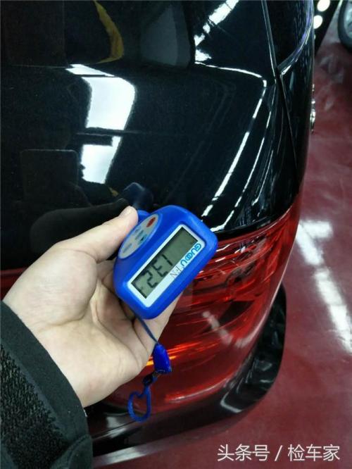 首先还是老规矩,在检测之前先绕车辆一圈进行进本的检测。车辆的后保险杠上有明显的划痕,还有后喷漆留下的残留物,有没有更换过呢?卖家看到小编的迟疑,小师傅我跟你说吧,这车后杠是后换的。原车主在倒车的时候没踩住刹车怼墙上了!也不算啥大事,既然卖家都这么说了咱就进行下一步吧。