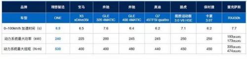 理想智造ONE和竞品的性能对比(资料来源:理想智造)
