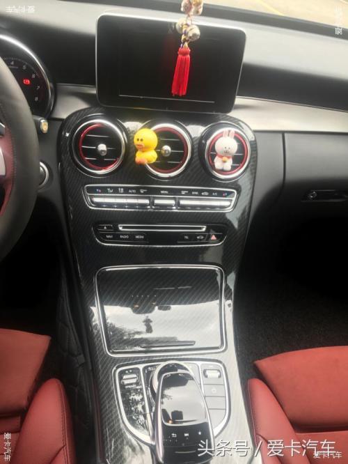 原厂中控是钢琴烤漆的,特别容易刮花,贴了个碳纤维面板。