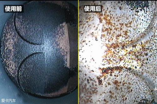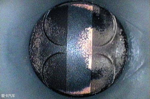 通过内窥镜我们观察到,由于一直都没有清洗过积碳,发动机活塞顶部已经形成了一层厚厚的积碳。原本洁净的气缸内脏成了这样,发动机性能怎么会不受影响呢?