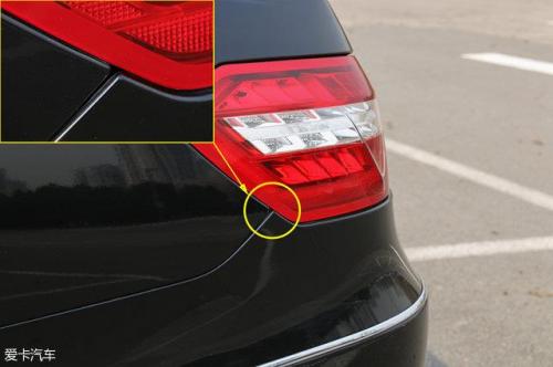 左后尾灯和后保险杠的接缝明显不齐,证明后保险杠是更换过的,再重新安装时才会出现这种现象。