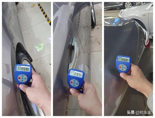 接下来经过一圈检测后发现该车左前叶子板钣金、左前门、左后门和左后叶子板均有喷漆现象,右侧外观覆盖件均为原厂漆面。外观情况总体来说还是非常不错的,特别是对于一辆开了近10年来说实属难得。