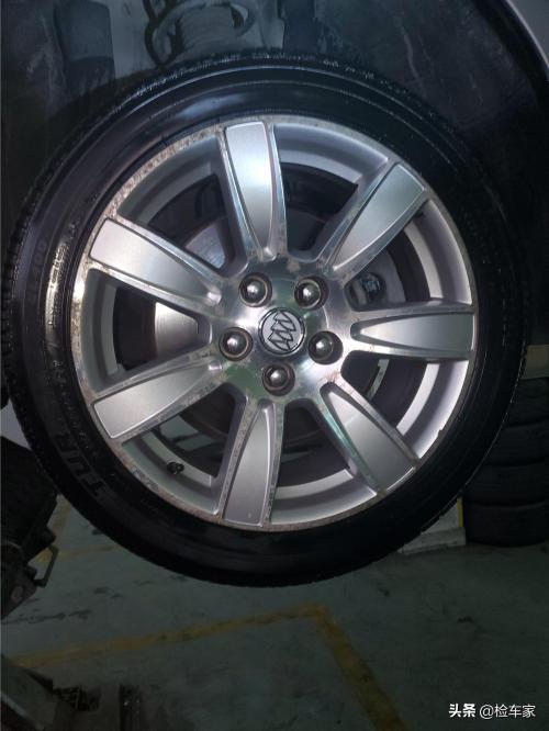 最后检查轮胎轮毂刹车片等部件,轮毂表面大面积氧化,刹车碟表面平整应该是刚加工不久,刹车片还有二分之一,轮胎均为18年生产的,均能正常使用。
