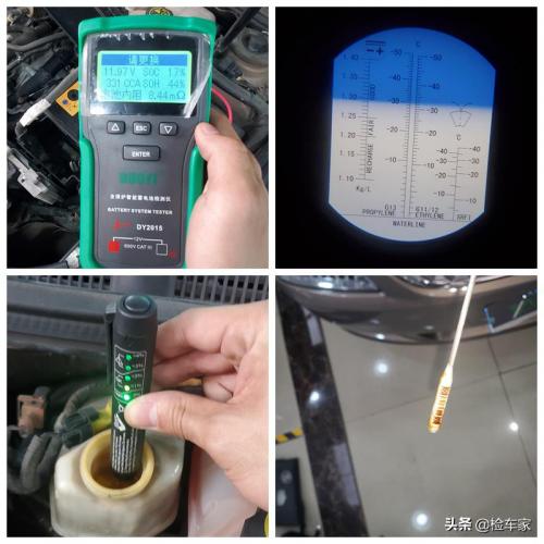 接下来检测电瓶寿命以及全车油液,电瓶寿命不足需要更换了,防冻液冰点充足,刹车油耗水量未超标,机油也不是很脏。机舱方面就检测结束了,总体情况良好。