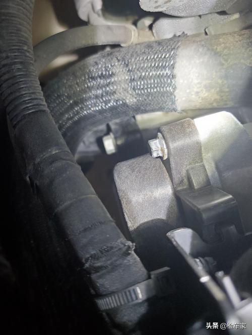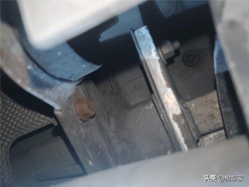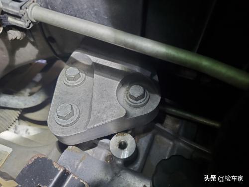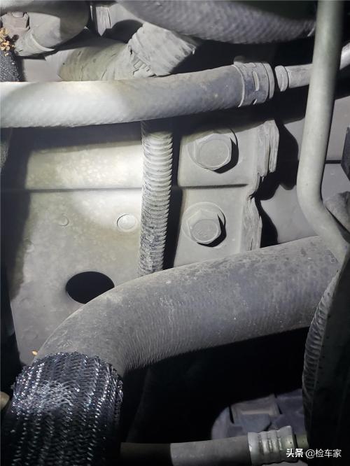 发动机右侧机脚胶有拆卸痕迹,仔细观察后发现机脚胶是后期更换过的。