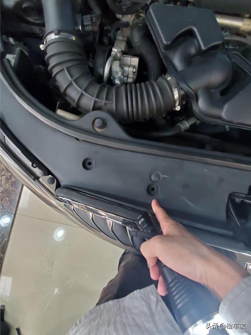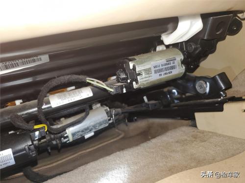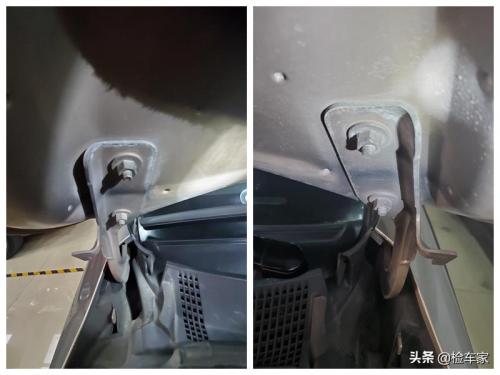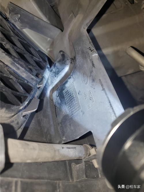拆开饰板,可以看到前防撞梁,溃缩吸能装置固定螺丝并无拆卸痕迹。