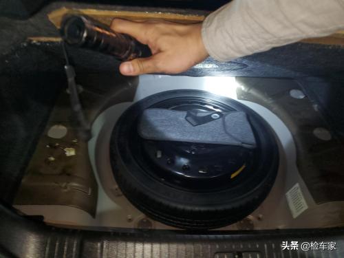 打开后备箱,掀开后备箱底板,可以看到备胎以及随车工具齐全。