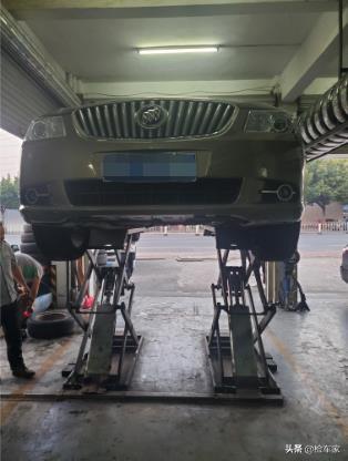 路试结束后我们把车开到了合作的修理店进行最后的底盘检测。把车升起来后一眼望去并未发现有过明显托底现象。