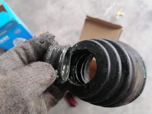 更换防尘套还有一种免拆半轴方法,那种防尘套弹性非常好某宝上面有。把旧的防尘套用剪刀直接剪掉,新防尘套塞进扩张器里面,然后捅到半轴里面就行。