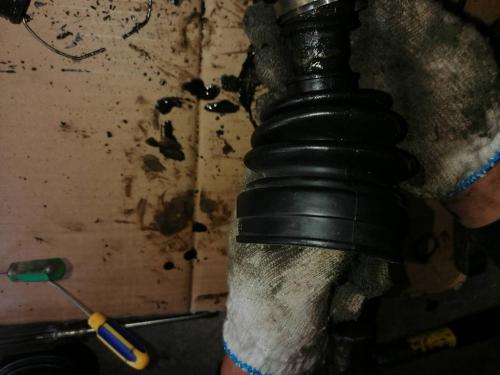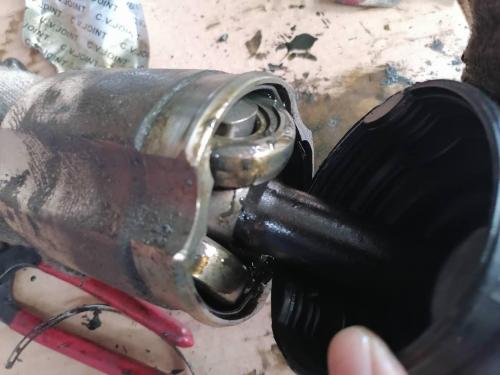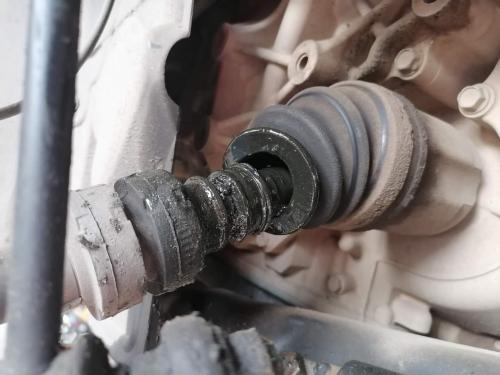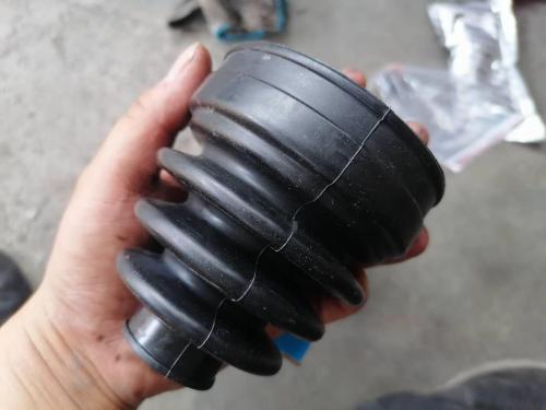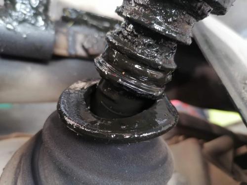 半轴外球笼防尘套完好,一般正常情况下外球笼防尘套更容易损坏,经常转弯打方向外球笼套容易拉扯,不知道为什么这次里面的先坏了。