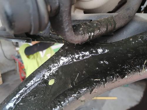 车辆故障:左半轴内球笼漏油严重。