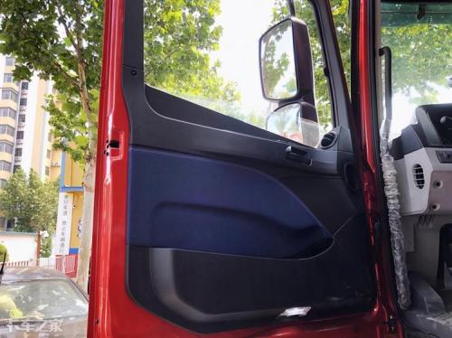 该车型高顶驾驶室上方设有内置的LED示宽灯,宽体曲面风挡玻璃提供更加稳定的视觉效果。尽管作为一款经济性车型,但是像一体式反光镜、前侧照地镜等主动安全配置均作为标配出现,外侧的三层阶梯式合金脚踏板便于驾驶员上下车辆。