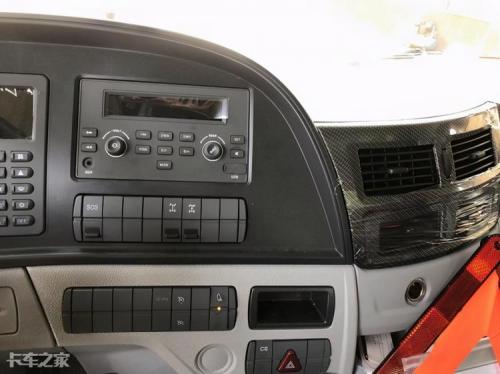 GTL环绕式中控台设有自动恒温空调、手动影音娱乐等功能,下方设有轮间、轴间差速锁、定速巡航、驾驶室锁止开关,其侧面的简易储物格可以放置票据、手机等随车物品。