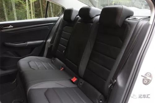 而如此一来,也使得车内的乘坐空间得到大幅提升。值得一提的是,全新一代宝来的后排座椅靠背与坐垫之间的角度还采用了偏向锐角的设计,这样不仅可以使乘客的身体与座椅更加贴合,同时也能进一步提升后排的腿部与头部空间。像达哥这样1米89的大个坐进去,腿部还能有小两拳的富裕,头部余量也能达到3指左右。不过,后排中央地板的隆起比较高,如果坐满三人的话,在舒适性上还是会打折扣的。