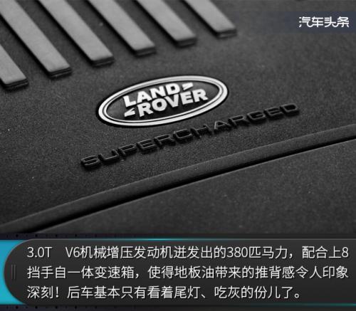 要知道的是:它与揽胜及揽胜运动采用的是同样的动力组合,3.0T高功率机械增压发动机与ZF的8速自动变速箱是多年以来的黄金搭档。
