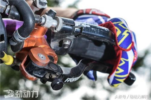 左侧控制总成除了传统的离合器手柄以外(已改为短牛角省力杠杆),下方还增加了后制动器手柄,方便车手在双脚离开脚踏时可以控制车辆后轮,防止抬头过度。