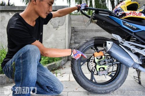 虽然春风150NK在入门级街车里动力算很不错的,但是对于一辆无规则运动的摩托车来说还是有所欠缺,所以小谷给150NK改装了加大后链轮,增加了轮上扭力输出。