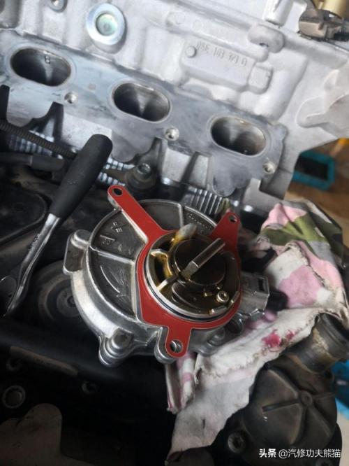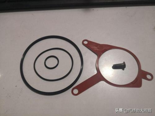 刹车真空修理包。原厂貌似只提供这个红色的垫子。因为泵上一个螺丝滑牙了,所以我从另一个报废的Q5泵泵上拆了一个螺丝过来。大的那个圈是专用的密封圈,奥迪没单独提供,但是宝马有,我就用了宝马的,中间那个圈是被厂家省略偷工减料的一个圈,我给补回去,最小的那个圈是上面一个单向阀的圈,原厂也不提供,我直接买了日本进口挖机上的同尺寸密封圈,这样修复之后的泵就万无一失了。
