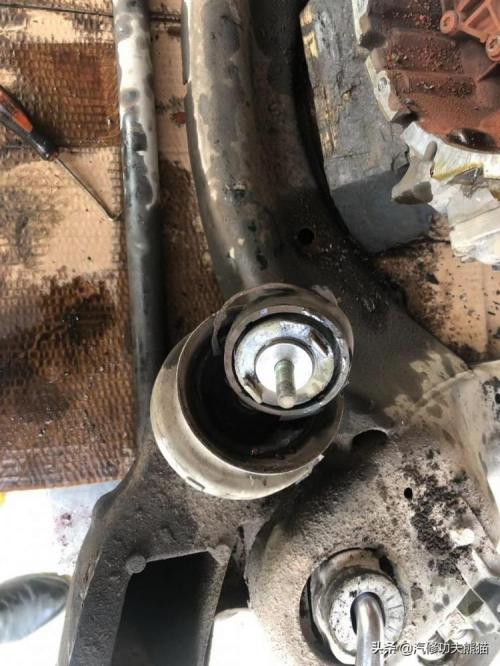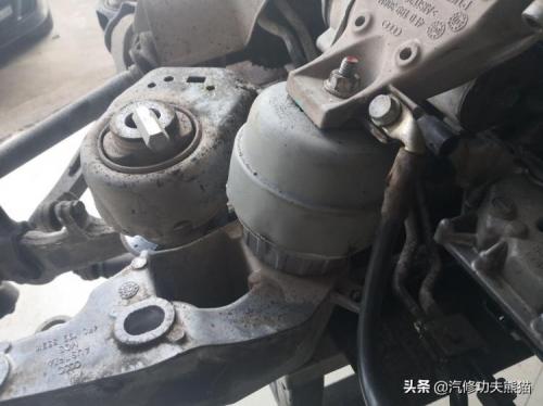 这个发动机支架垫,碎了。这东西就是发动机的减震器,直接影响到发动机传递到驾驶室内的震动