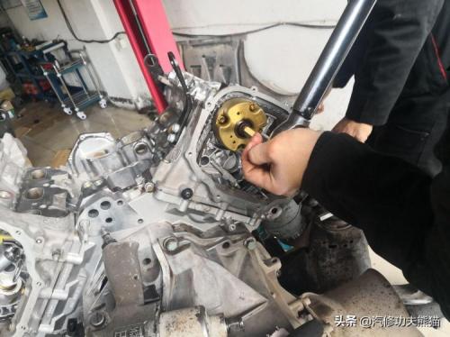 背面个那个油封的唇边牢牢的扣住工具,然后工具对住曲轴前端,把油封平推过去就OK了。