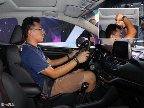 图中的体验者身高为176cm,当他坐在新款瑞风S3的前排时,将座椅调整至最低,前后距离调整到最适宜他本人驾驶操作的位置,此时所能够获得的头部空余空间约有两拳,这样的空间表现非常不错。