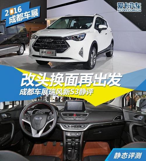 今天(2016年9月2日),恰逢第十九届成都车展媒体日。就在今天上午,江淮汽车对外发布了新款瑞风S3车型。众所周知,江淮瑞风S3一直以来都是国内小型SUV细分市场上的热销车型,平均每个月超过一万台的高销量成绩,直观地反映出了消费者对它的认可和喜爱。那么江淮汽车此次发布的新款瑞风S3,会给人们带来什么新鲜的感觉呢?恐怕任何简单的文字都难以概括,还是让我们跟随正在成都车展前方编辑的脚步,来一同走近这款新车去详细了解吧。