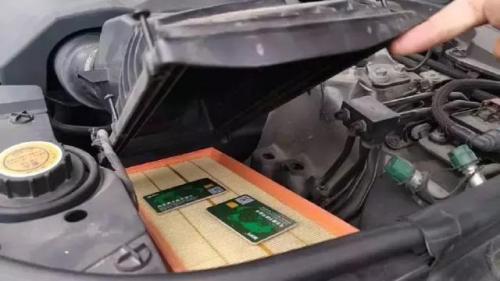 这种神奇的卡片,根据商家指导,只要这样放在车上,就能减少尾气排放,节油20%。