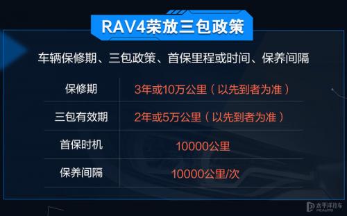 两车的保修期和三包有效期均一致,差别在于首保时机和保养间隔,奇骏为5000公里/保,RAV4荣放则为10000公里/保,更具优势。