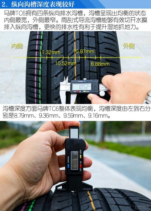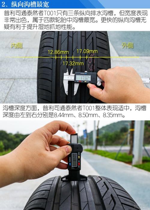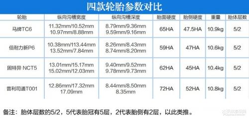 四款轮胎虽然在胎面硬度、胎侧硬度、沟槽深度和宽度以及重量上各有千秋,比如普利司通泰然者T001在沟槽宽度上更出色;固特异NCT5在沟槽深度和重量上表现突出,马牌TC6则更加偏向干湿地操控和节能耐磨,定位更加均衡;倍耐力新P6也突出操控和节能。不过它们总体上在花纹的设计上均是舒适性的取向,目标就是营造安静以及更高的乘坐舒适性表现。