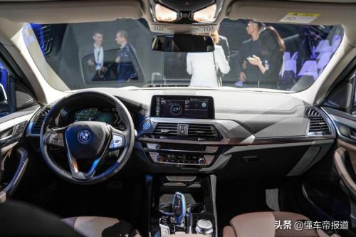 新车采用了BMW i品牌专属的设计语言,宝马标志性的双肾格栅得到保留,不过却使用了封闭式黑色面板结构,并由蓝色阴影勾勒出外部轮廓。车内采用了和宝马X3相同的布局,不过为了凸显新能源身份则会融入一些蓝色元素,包括了蓝色氛围灯。