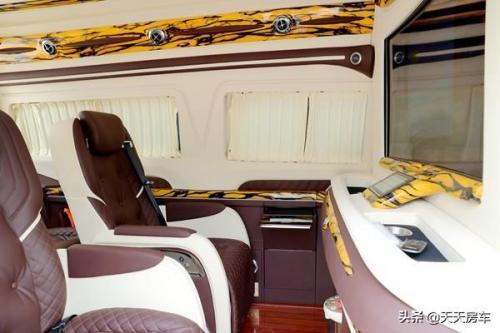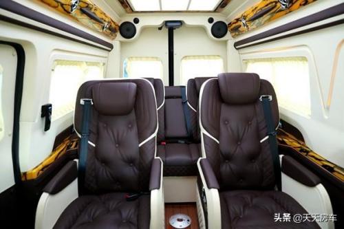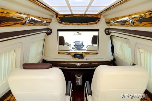 整车尾部可双开门,并且进行了商务软包、暗扣式隐私窗帘亦有设置,看到这不得不让人........原来豪华感是这么创造的。