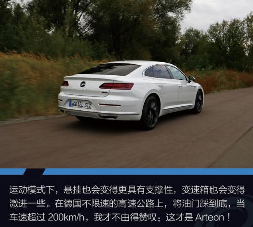 运动模式下,悬挂也会变得更具有支撑性,过弯时会有明显的区别。变速箱也会变得激进一些,不再稍微加加速就匆忙忙的升挡。在德国不限速的高速公路上,将油门踩到底,才发现这台高功率2.0TSI的真正实力,当车速超过200km/h,我才不由得赞叹:这才是Arteon!