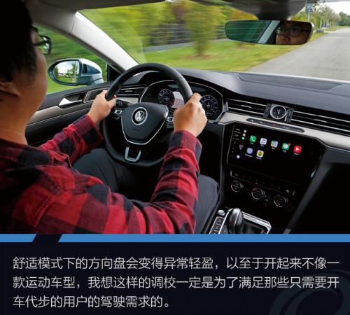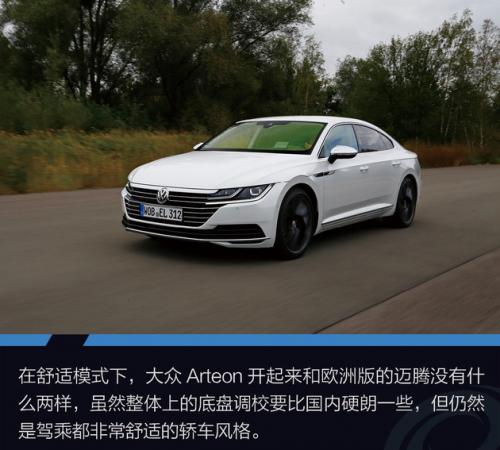 在舒适模式下,大众Arteon开起来和欧洲版的迈腾没有什么两样,虽然整体上的底盘调校要比国内硬朗一些,但仍然是驾乘都非常舒适的轿车风格。尤其坐在后排时,能够明显感觉到底盘的质感,车身并不会将颠簸完全抹除,但是通过沟沟坎坎都非常干脆,体现出了高端GT车型的水准。