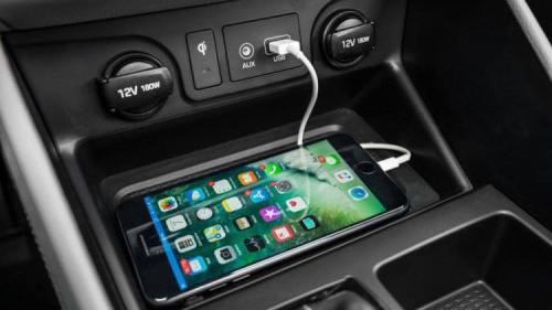 美版途胜前面置物槽支持无线充电功能,这样一个小细节值得国产版“借鉴”一下。